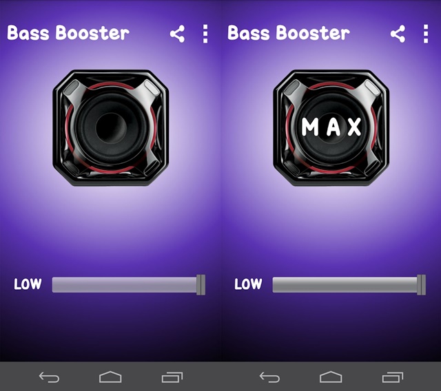 Di urutan yang pertama ada aplikasi Subwoofer Bass Booster. Dari namanya tentu kita sudah tahu bahwa aplikasi ini akan meningkatkan kualitas bass pada speaker ponsel. Aplikasi ini cukup simpel yang mana hanya memliki satu pengaturan yaitu untuk menyesuaikan tingkat bass. Anda dapat mengatur kualitas bass dari mulai Low hingga Max.