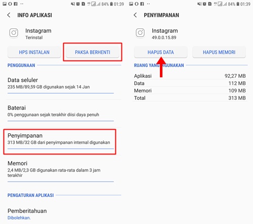 Paksa Berhenti dan Hapus Data Aplikasi Instagram
