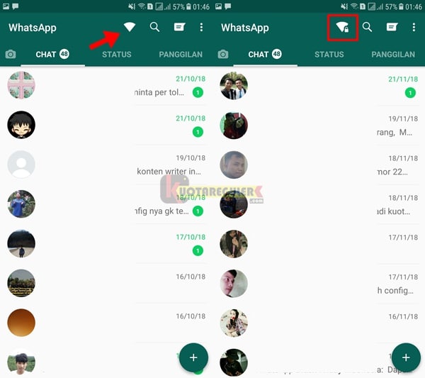 Maka dengan fitur DND yang di aktifkan, WA Plus anda tidak akan bisa digunakan untuk menerima dan mengirim pesan sampai fitur DND-nya anda buka kembali. Untuk mmembuka fitur DND sangat mudah, anda hanya cukup tap kembali icon signal sampai icon gemboknya hilang. Restar WhatsApp plus maka secara otomatis akan bisa digunakan untuk mengirim dan menerima pesan kembali.