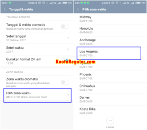 3. Selanjutnya Ubah zona waktu ponsel anda ke Los Angeles atau Phoniex yang sekiranya waktu disini siang dan dan di zona waktu tersebut malam jam 12 ke atas.