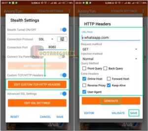 4. Selanjutnya, tap tombol EDIT CUSTOM TCP/HTTP HEADERS lalu setting seperti parameter dibawah ini. Kalian tidak terpaku dengan pengaturan yang admin berikan, kalian bisa mencoba ber-eksperimen untuk hasil yang lebih optimal.