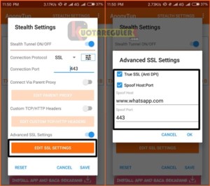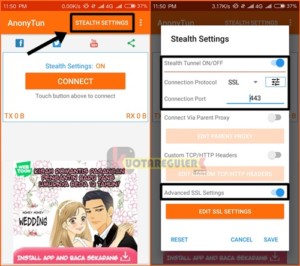 Namun jika Anonytun tidak bisa terhubung, maka silahkan kalian ON OFF data ponsel kalian lalu lakukan pancingan terlebih dulu dengan menonaktifkan pengaturan stealth lalu coba konekan lagi Anonytunnya dengan keadaan tanpa settingan. Jika sudah terhubung, silahkan kalian aktifkan kembali Stealth setting kemudian konekan lagi Anonytunnya. Baca selengkapnya : Cara Mengatasi Anonytun Tidak Bisa Connect (Reconnecting Timeout)