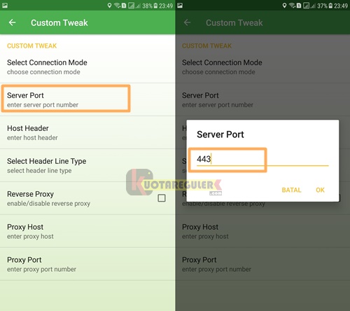 4. Lalu ubah Server Port ke 443.