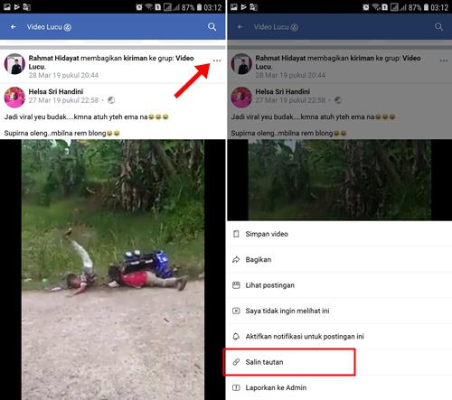2. Kemudian silahkan tap icon titik 3 yang berada di sudut kanan video lalu pilih menu Copy Link / Salin tautan.