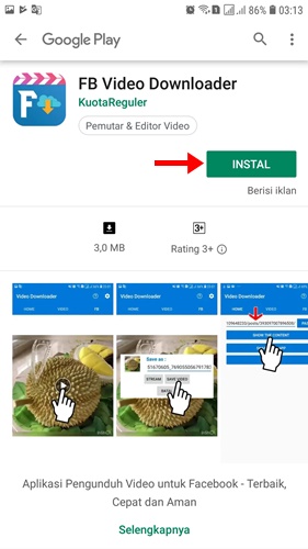 3. Selanjutnya silahkan anda download aplikasi FB Video Downloader melalui Google Play.